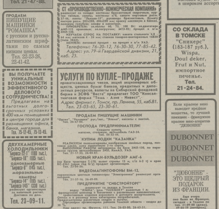 На второй полосе статьи о приватизации и инфляции, дискуссии по поводу предстоящего референдума, и, как луч света в тёмном царстве, новость о строительстве первого монолитного дома в Томске. Бросается в глаза статья о продаже золотосодержащих разъемов с завода Контур – по заниженной цене, а значит, преступной. Заголовок призывает читателя порассуждать: «Сколько стоят 18 килограммов золота?»