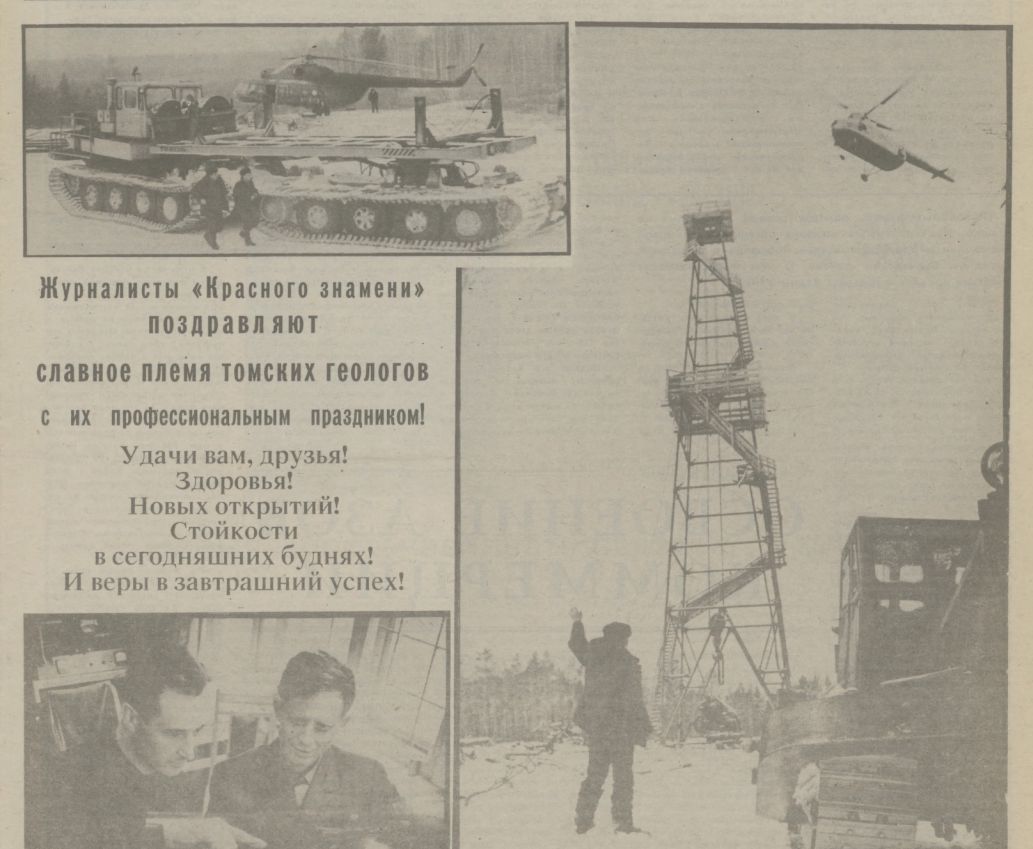 На первой полосе – огромные фотографии нефтяных вышек и пафосное поздравление с днем геолога. Переворачиваем страницу и читаем про предпринимателей из Бакчара в публикации «Освоение азов коммерции».